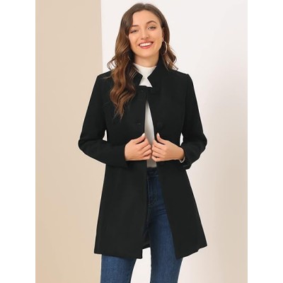 Allegra K Women's Winter Overcoat Mid-Long Stand Collar Single Breasted Coat Outerwear